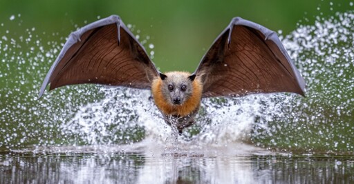 © Douglas Gimesy / cupoty.comSplash. Shortlisted in the Animals category. A grey-headed flying fox makes a high-speed belly-dip in a pool of water.