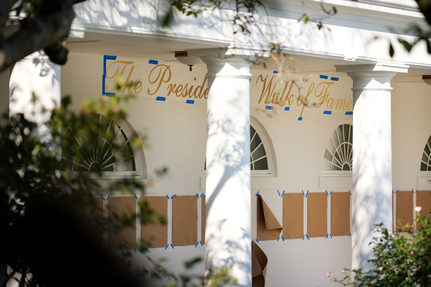 In late September, Trump tested out a similar sign as he was mapping out his “Presidential Walk of Fame” along the West Colonnade: