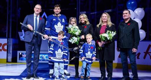 John Tavares was joined on the ice before Wednesday’s opening faceoff by his family to mark an impressive milestone.