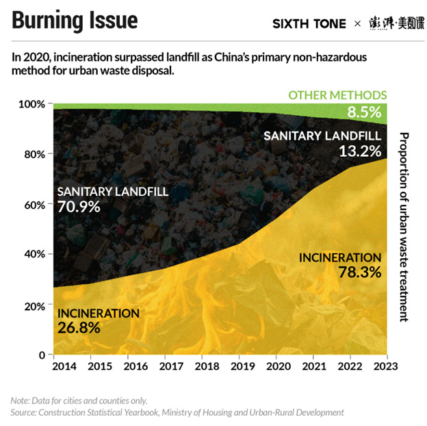 The country turned to incinerators, which burn household and some industrial waste to generate electricity. Today, 78% of Chinese trash heads to incinerators.
