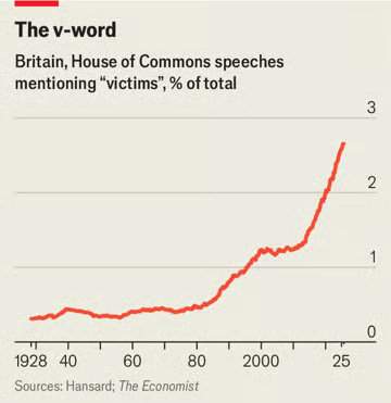 How victims took over politicsThis is an interesting piece from The Economist on how victims took over British politics: “Since the start of 2020 “victims” have been mentioned in Parliament 16,515 times, more than “Brexit” (10,797 times), “welfare” (9,978), “immigration” (8,644), “pensioners” (3,438) and “voters” (2,540).”