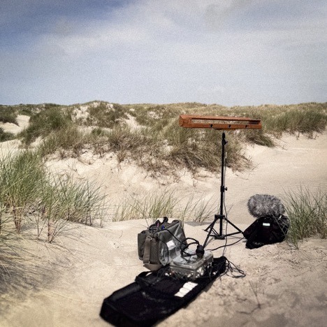 Hainbuch’s Aeolian Harp and Nagra reel-to-reel recorder in the dunes of Amrum. Photo: Hainbuch.