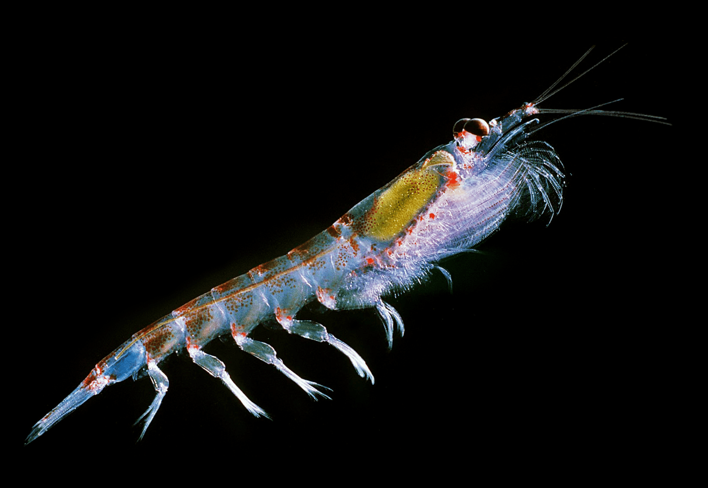 Nature Communications describes krill as marine animals that create “the largest monospecific aggregations (swarms) in the animal kingdom,” which means they are easy prey for hungry whales as well as gigantic fishing trawlers.
