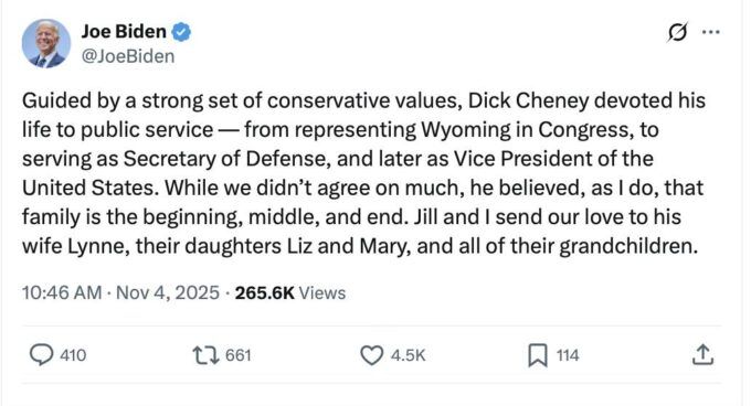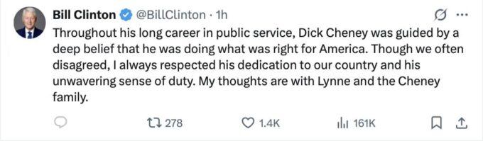 Democratic Party leaders like the Clintons, who have scorned Mamdani, have heaped praise on Dick Cheney. And they wonder why they poll worse than Trump…
