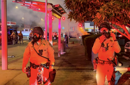 Centro CSO and FRSO – LA members documented the East Los Angeles Sheriff’s Department as they shot tear gas indiscriminately at Chicano families. They agitated against the deputies by calling out their crimes as they happened. Raza was furious and called out the East Los Angeles Sheriff’s Department for shooting pepper balls at children. Pepper balls are like paintballs but release tear gas on impact. The crowd also called out local KTLA media who were on scene. A fire was started by an incendiary grenade thrown recklessly by sheriff’s deputies.