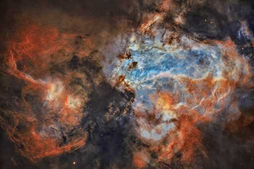 Rob Lyons from Vancouver, British Columbia, Canada Messier 17 — also known as the Swan Nebula or the Omega Nebula — is one of the largest star-forming regions in our galaxy, filled with gas and dust. This image comprises 45 hours of exposure taken with two 8-inch scopes — one with Hubble-palette filters and another with dual-bandContinue reading "Swirls in the Swan"