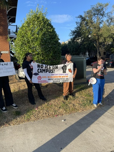 SDS member Connor Jaap said, “Me and my fellow members felt called to speak out and fight against the bigotry that the Trump administration is trying to shove down our throats. We will continue to stand up for what we believe in, which is accessible and equitable higher education for all, a sanctuary campus, the abolishment of ICE, and legalization for all.”