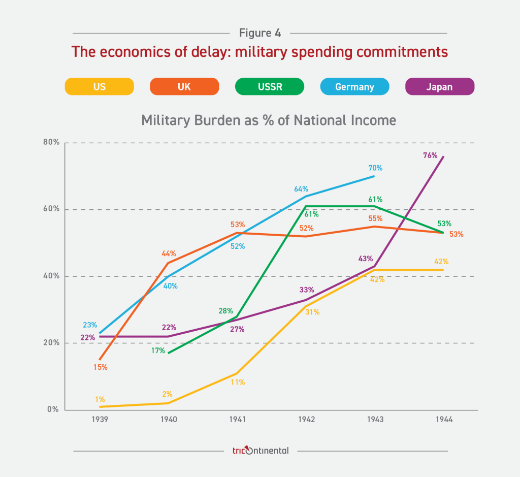 The economic arithmetic was clear: the Anglo-Americans had the money but would not fight. The fascists had militarised everything. The socialists had little but gave all.
