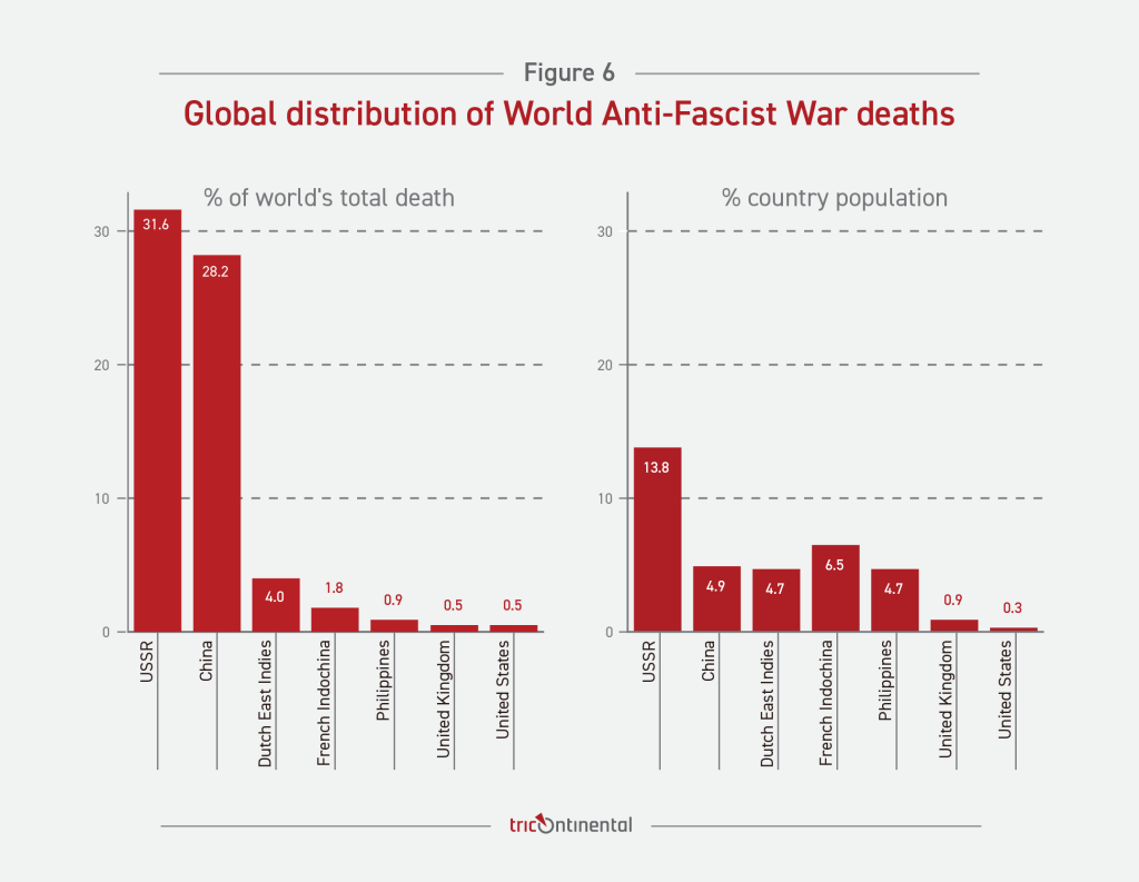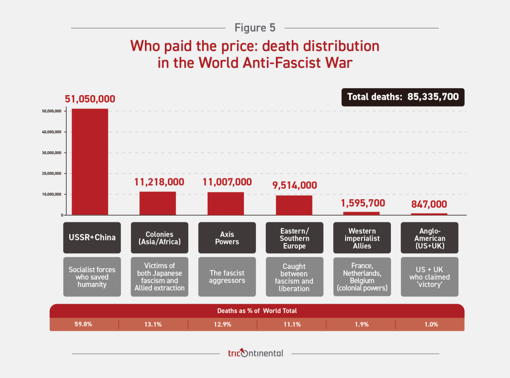 59.8% socialists dead, 13.1% colonised peoples dead – only 1% Anglo-Americans dead.