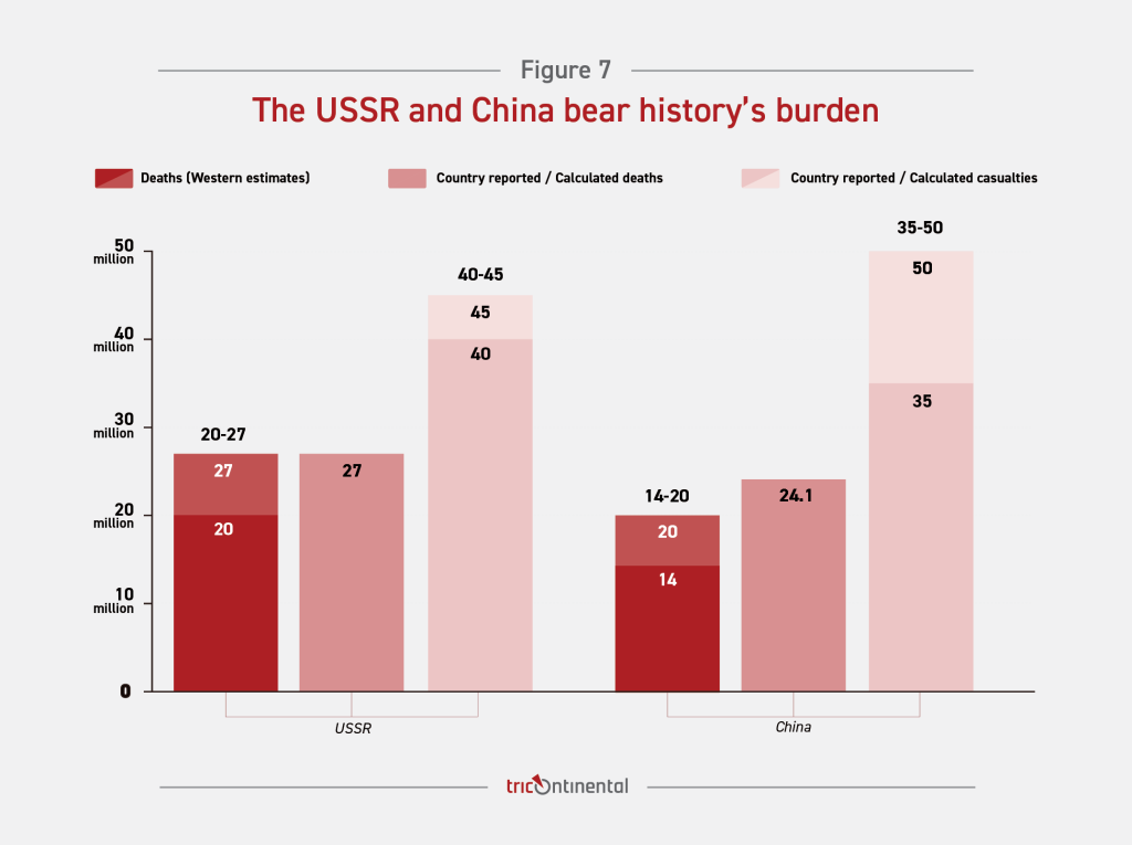 The Western insistence on counting only deaths performs a double erasure. When 35 million Chinese were killed or wounded, focusing only on the West’s understated count of 20 million or fewer deaths erases at least 11 million wounded people whose lives were destroyed by Japanese aggression.