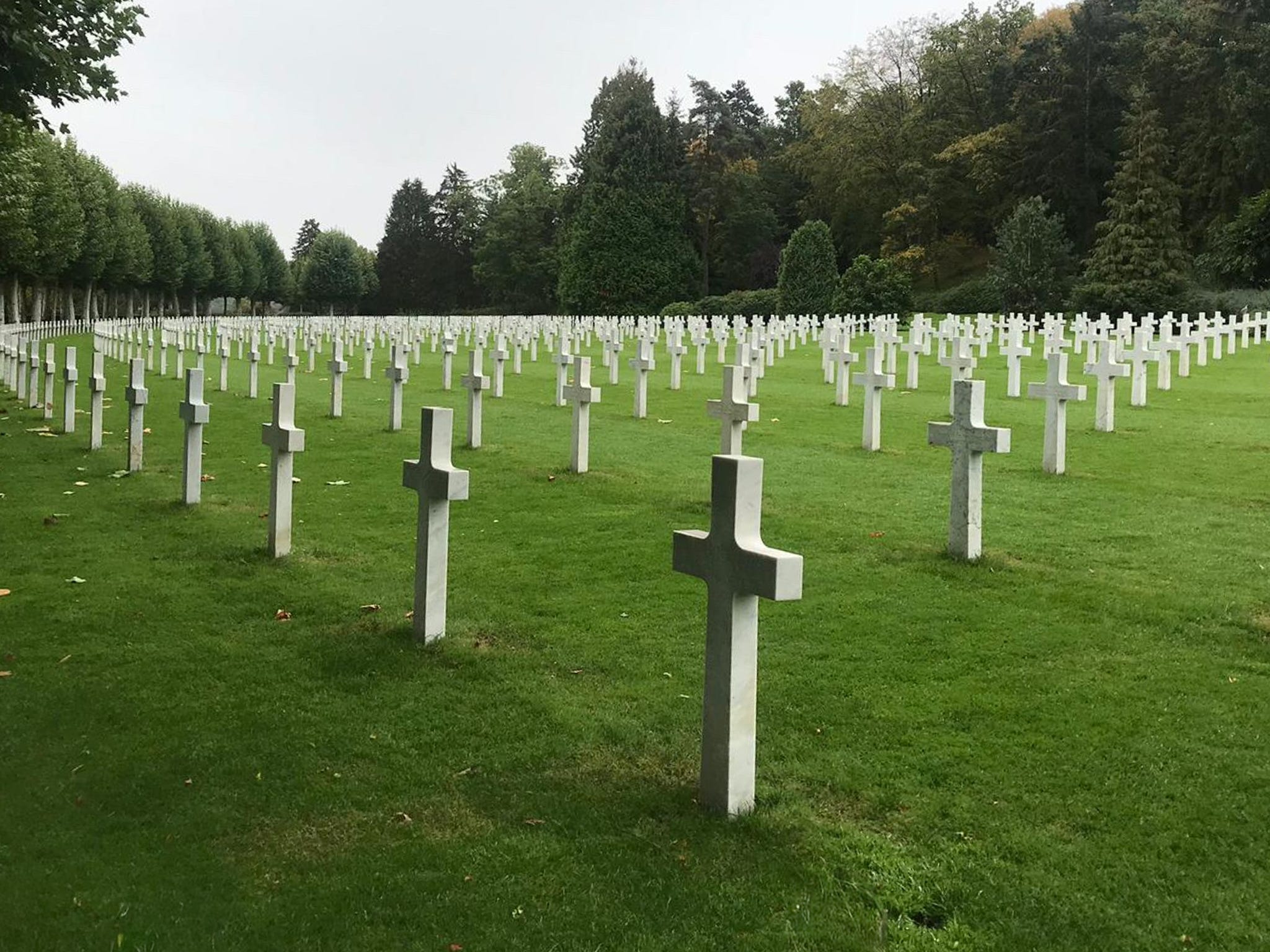 The crosses face Belleau Wood, the small patch of forest on a hill that US soldiers took by crawling across an open field under enemy fire. The crosses stand on the very ground on which thousands of US soldiers died in a war to protect our freedom and security.