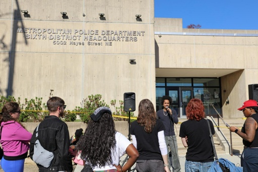 Washington, D.C. — A group of 20 community organizers and activists gathered outside the Metropolitan Police Department’s Sixth District station on Saturday, November 8, to demand transparency from the city’s officials – including Mayor Muriel Bowser and Chief of Police Pam Smith – around the October 17 cover-up, where an HSI agent shot into the car of an unarmed Black man. The Metropolitan Police (MPD) then lied about it on the police report. The action was organized by the DC Alliance Against Racist and Political Repression (DCAARPR).