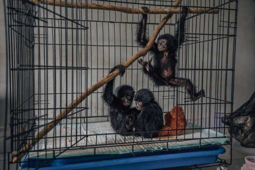 MEDAN, Indonesia — Two infant siamang gibbons cling to each other. Barely 6 months old, their lanky limbs entwine their tiny bodies as they stare out of the triage cage, their wide eyes shining. Each is an orphaned victim of the illegal pet trade. Like most trafficked gibbons, their mothers were likely shot and killed by poachers before they were wrested from her body and shipped into the trade. Deprived of maternal body heat and milk, the youngsters now instinctively grip each other as if for comfort. At the back of the rescue enclosure, a smaller body hunkers in a corner, shrouded in solitude and silence. A tiny Javan gibbon, it glances up from time to time, but is wary. “The Javan gibbon is still shy,” says Sinan Serhadli, support officer at the gibbon rehabilitation and release program run by the Orangutan Information Centre (OIC) as part of the Sumatran Rescue Alliance (SRA) in Indonesia’s North Sumatra province. “He will eat, but he doesn’t want any contact with humans.” Sinan Serhadli inspects the health of two siamang gibbons that were confiscated from traffickers in March 2025. Image by Carolyn Cowan / Mongabay. The infant siamangs (Symphalangus syndactylus) and Javan gibbon (Hylobates moloch) were brought to the SRA rehabilitation center on the outskirts of Gunung Leuser National Park in March 2025 after an Indonesian naval patrol confiscated them from a boat intercepted in the Strait of Malacca. The vessel, believed to be destined for Peninsular Malaysia or southern Thailand, was smuggling…This article was originally published on Mongabay