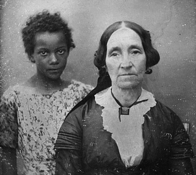 Portrait of an older woman in New Orleans with her enslaved servant girl in the mid-19th century – Public Domain