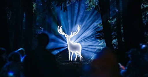 Liang Sen / Xinhua / GettyPeople view a light show during a media preview of Harry Potter: A Forbidden Forest Experience, at Stanley Park in Vancouver, British Columbia, Canada, on November 6, 2025. The immersive outdoor event allows visitors to explore a themed trail inspired by the Forbidden Forest from the Harry Potter films.