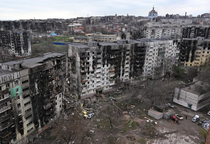 The strategically important southeastern city of Mariupol was surrounded within days. Homes and infrastructure were shelled. Credit: Associated Press