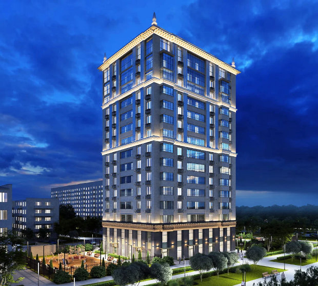 Over a large block that was decimated in central Mariupol, seven separate residential complexes are nearing completion. Among them are four gemstone-named developments ranging from nine to 15 storeys. Three apartment blocks in the centre of the “resort town” – the Residence I, Residence II, and Residence III – are due to be completed by the end of the year.