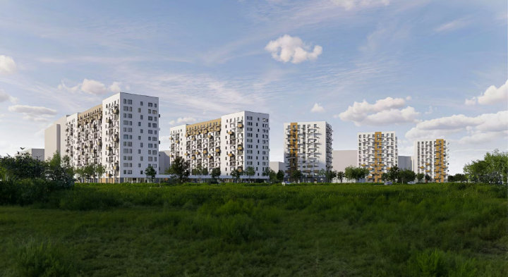 Polished advertisements for the new building show it will feature landscaped courtyards and a 24-hour concierge service. Prices for a two-bedroom apartment are listed for about €130,000.