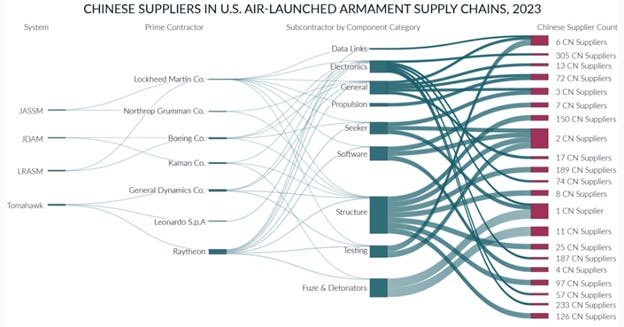 Good morning. China has supply chain monopolies on many of the critical components that Western weapons makers need. And that feature gets a lot of attention, that nothing really gets manufactured without going through China, and the Pentagon in particular is reliant on Chinese companies to get their weapons platforms built.