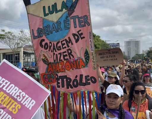During the first week of COP, it was mainly Indigenous people who led the two biggest civil society actions: a flotilla sailing on the Amazon River delta on Wednesday and a blockade of the conference centre’s entrance on Friday. Thousands also participated on Saturday.