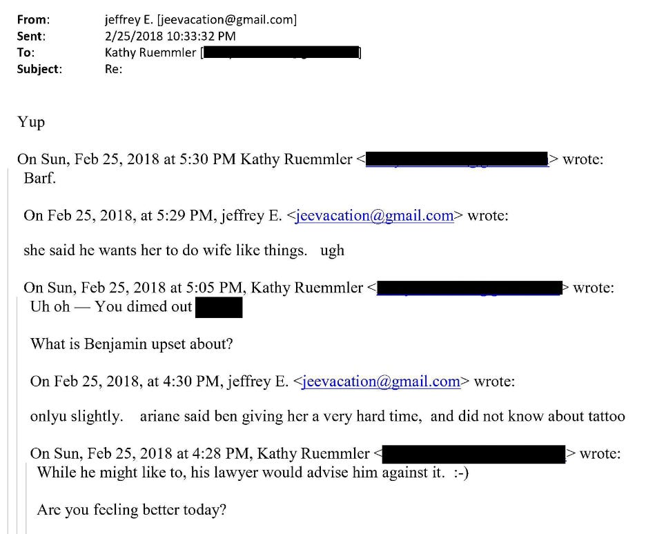 House disclosures show that Epstein and de Rothschild remained close in the years before Epstein’s death. In an email exchange in 2018 with former Obama White House counsel Kathryn Ruemmler, Epstein gossiped about de Rothschild’s marital issues with Benjamin de Rothschild, heir to the Rothschild fortune. He wrote to Ruemmler, “ariane said ben giving her a very hard time, and did not know about tattoo…she said he wants her to do wife like things. ugh.” Ruemmler replied, “Barf.”