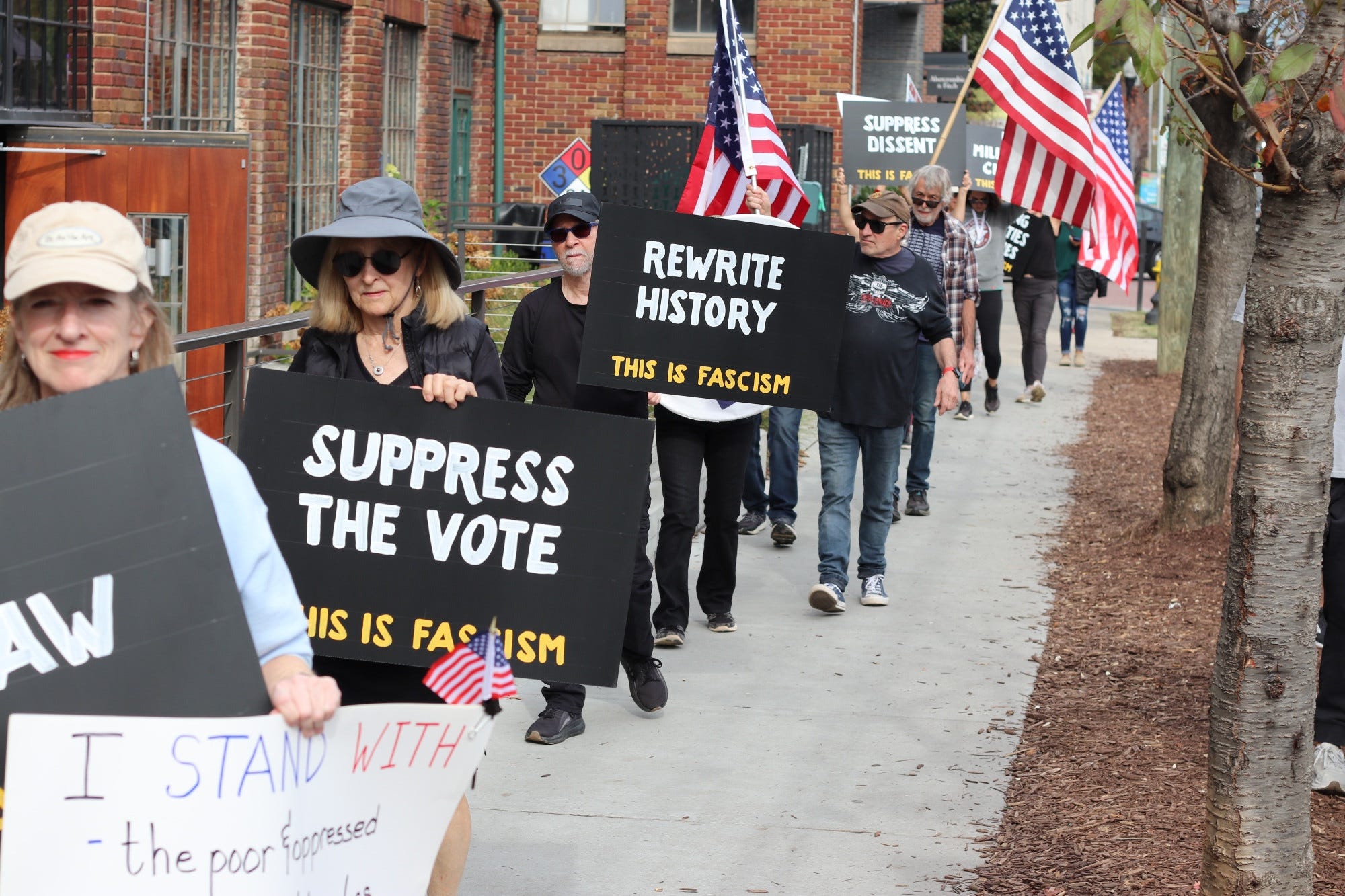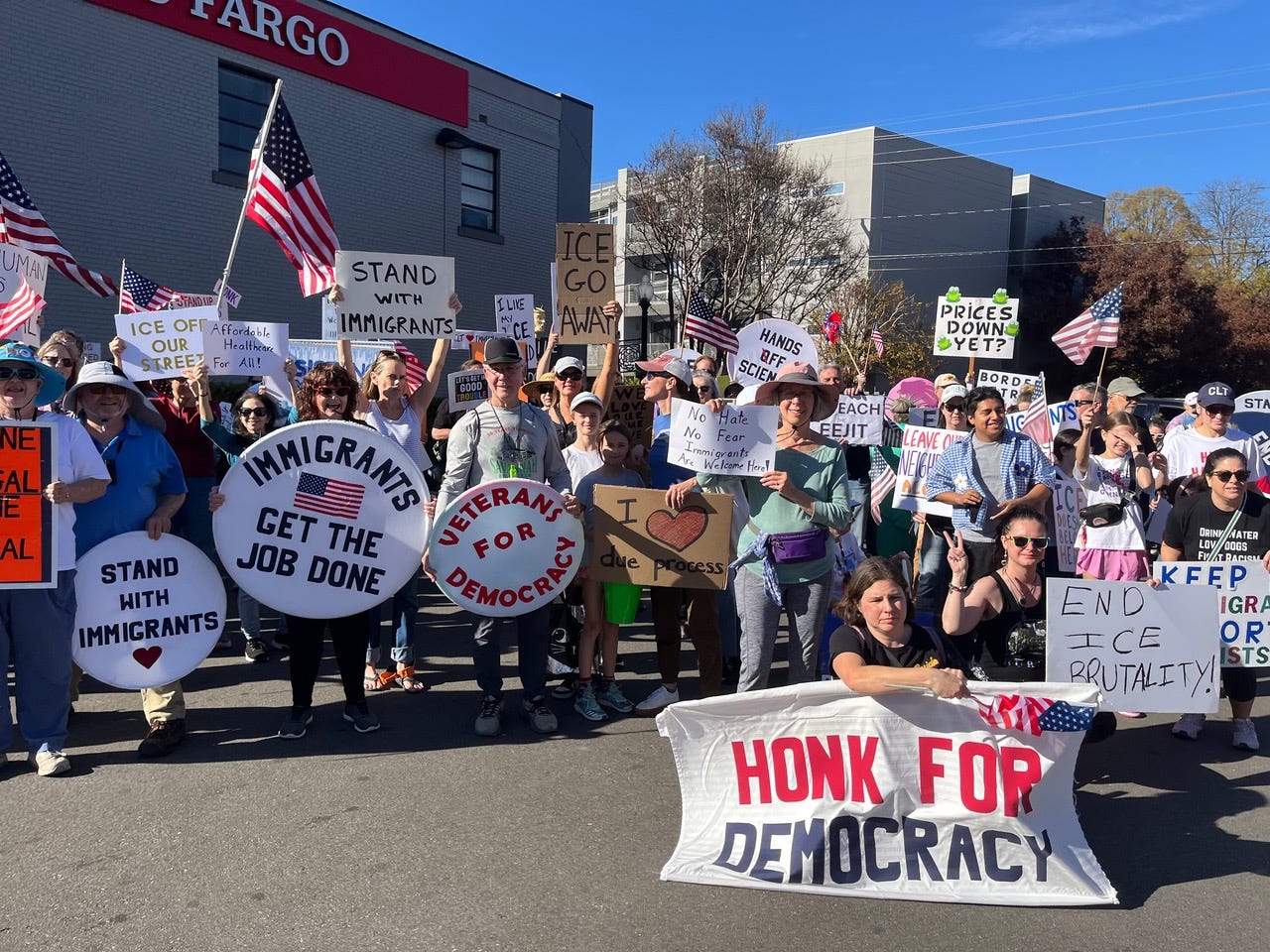 Many of us in Charlotte have been inspired by you all for months as we have grown our protest movement of weekly protests. We now protest at ~25 locations including three highway overpasses. With ICE/CBP newly arrived in Charlotte our protest crowds have grown, so that today we had 60 on the bridge. On Sunday we had 100+ where we normally have a couple dozen. Our Saturday “Signs of Fascism” walk was well received.