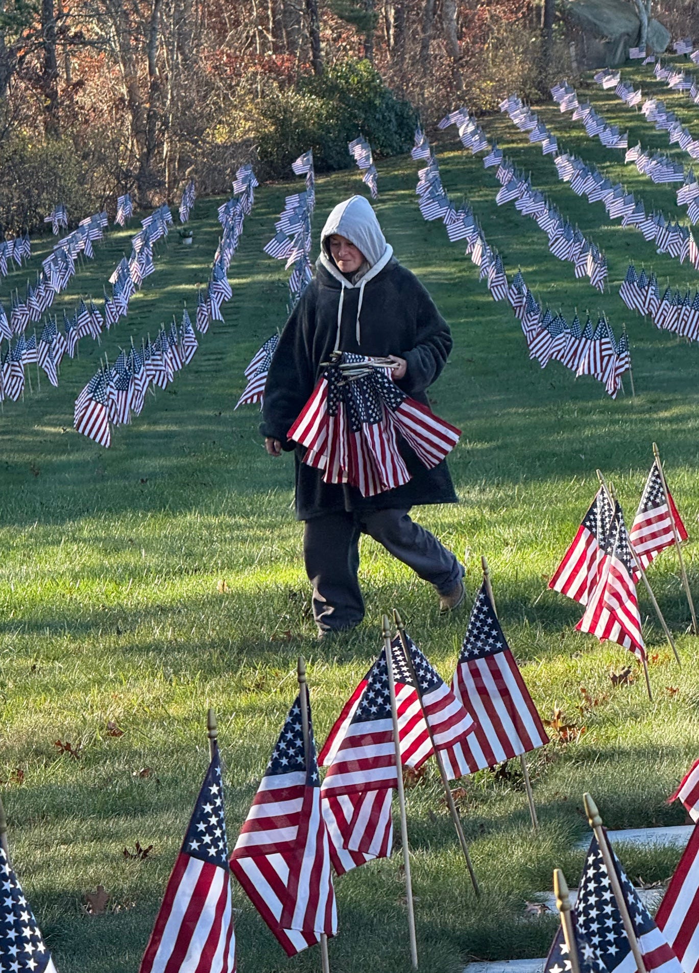 Saturday, Nov 15. Cold. A battalion of volunteers bundled up while collecting grave flags. 77,000+ flags removed over the 5-acre hallowed grounds site. A solemn day.