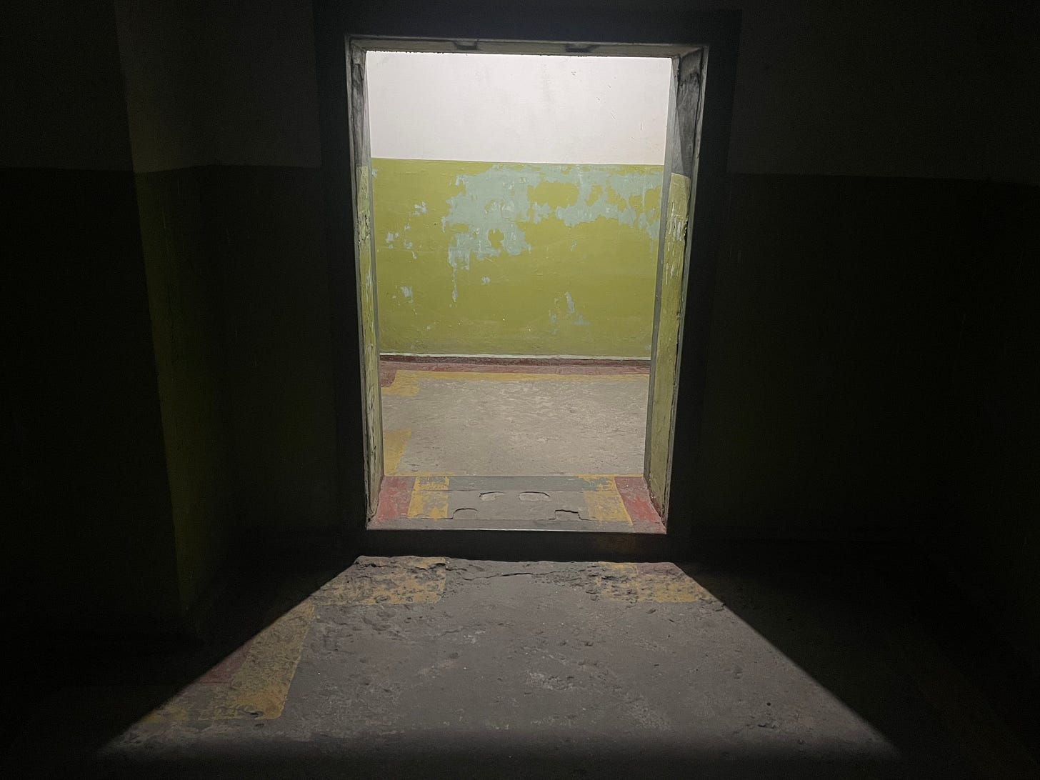 A cold-war-era bomb shelter in Nikopol, Ukraine. Built for nuclear war, it has been adapted as a shelter for factory workers targeted by Russian missiles and drones. Photo TS September 2025.