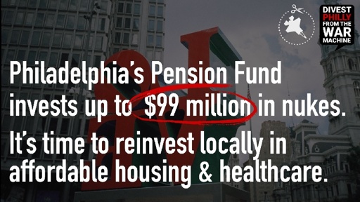 “The Philadelphia Public Banking Coalition is grateful for the resolution passed by Council today urging the Pension Board to divest from nuclear weapon components and systems manufacturing,” said Stan Shapiro, member of the Philadelphia Public Banking Coalition. “These death dealing instruments have no place in a pension fund whose purpose is to support human life, not end it. In our view, however, nuclear divestment should not be followed by reinvestment into other questionable instruments that do nothing for the people of our City. Instead, the Board should re-invest money coming out of instruments of war into financially prudent projects right here in Philadelphia that advance the interests and needs of the people of our City.”