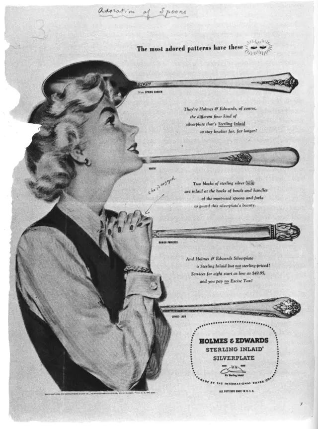 Nabokov illustrated his lecture with this advertisement which he called “the adoration of the spoons”