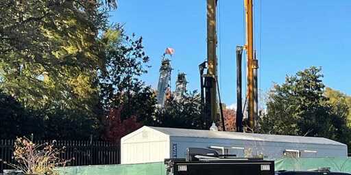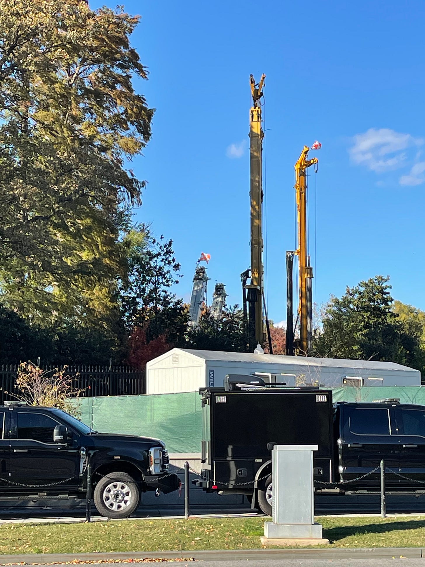 By the time of my visit to the nation’s capital, our president had already leveled the East Wing of the White House, the side where the public entrance used to be, where guests were once welcomed. We were standing on the west side of the complex, watching a movement of heavy machinery that seemed arbitrary, unplanned, and chaotic. Since the semi driver had to make a whole series of turns before backing in, it was not hard to see his load: a CZM utility drilling rig. It would join the collection of other heavy equipment at the edge of a pit.
