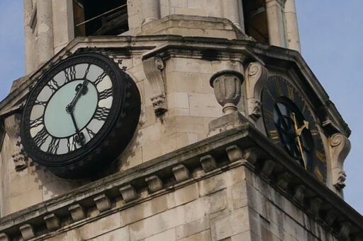 One of the four clock faces on this church is mismatched, in a nod to a historic slight.