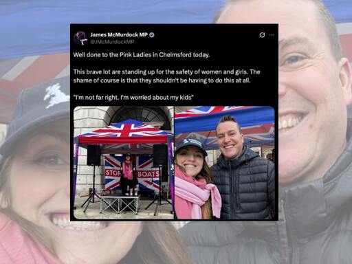 On Sunday 22 November, the anti-migrant Pink Ladies group met in Chelmsford. On their website, the Pink Ladies note they’re ‘partnered’ with the Womens Safety Initiative. Strange, then, that some of them would pose with ex-Reform MP James McMurdock, who was infamously convicted of assaulting his then-girlfriend: