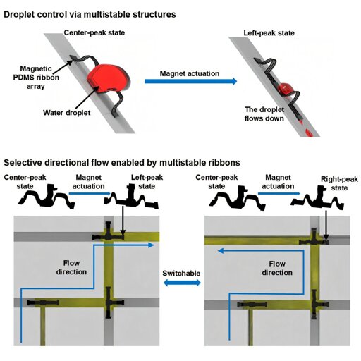 Materials Science and Engineering Department professor and UConn IMS resident faculty member, Xueju "Sophie" Wang's group has unveiled a simple but powerful way to control liquids: magnetically reconfigurable, multistable ribbons that switch shape on command and then hold that shape without any power.
