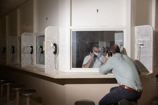 Larry Driskill speaking to reporter Maurice Chammah from the Gib Lewis Unit, a prison in Woodville, Texas.