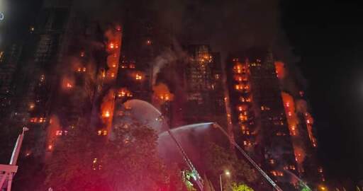 Officials said the fire started on the external scaffolding of one of the buildings, a 32-storey tower, and later spread to inside the building and then to nearby buildings.
