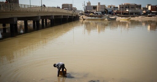 A boy fills up a water container in Saint-Louis, Senegal on January 8, 2025. The coastal capital city is at risk of flooding due to climate change. | Andres Gutierrez/Anadolu via Getty Images