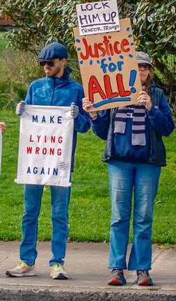 Up here in rural Northern California, on Saturday, Nov. 29, 2025, we are keeping the steady drumbeat going: “Save our democracy; RESIST Trump’s murder, stealing, and depravity.” Photos by Robert Dominy.