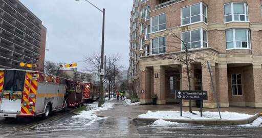 Officials say they continue to battle a fire at two buildings in the Thorncliffe Park area, adding it is difficult to access where the material that is burning is located.