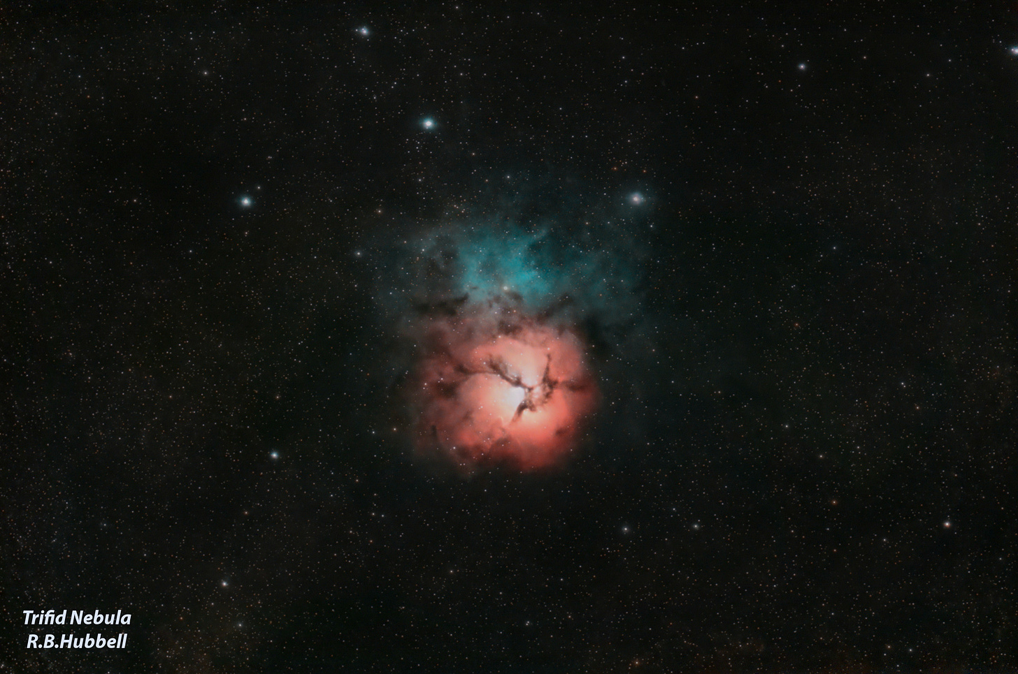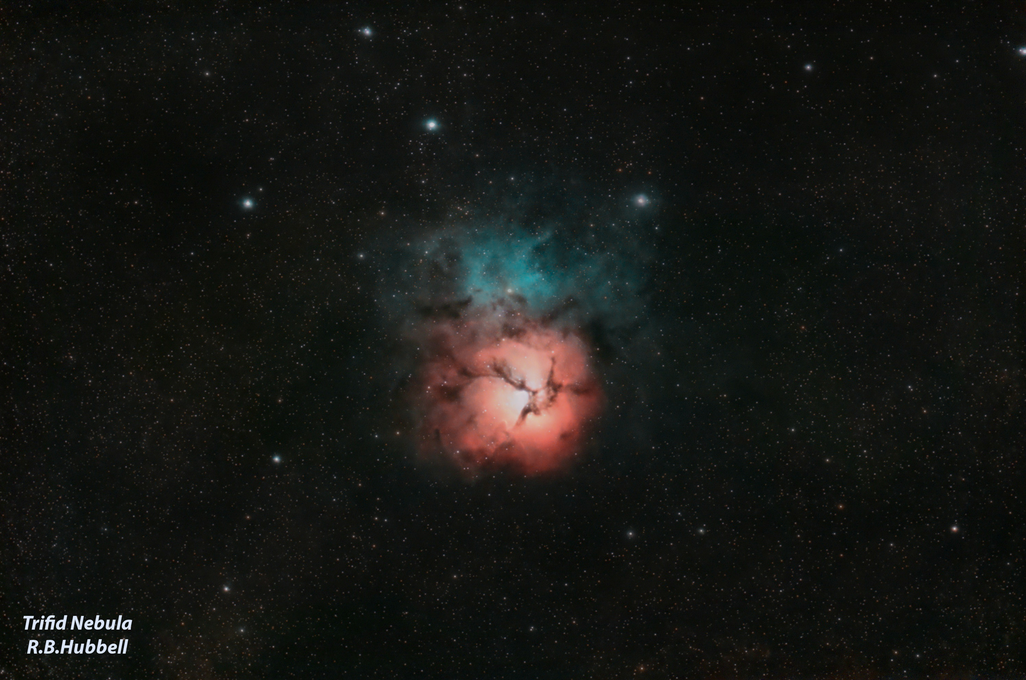 The Trifid Nebula is located 9,000 light-years from Earth. Its unusual appearance is caused by the combination of three types of nebulae—emission, reflection, and dark.