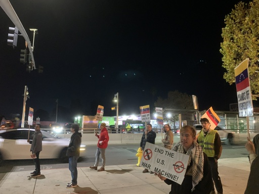 San Jose, CA – On the evening of Friday, November 21, 20 people gathered on the corner of King Road and Alum Rock Avenue to protest the buildup of U.S. Navy presence off Venezuela. This is in the heart of Eastside San Jose, the home to many Chicano and Latino residents.