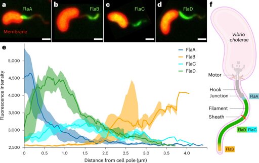 Cholera is a deadly bacterial disease that kills about 95,000 people every year. Vibrio cholerae bacteria infect cells in the small intestine, which the bacteria can do in part due to their flagella—powerful tail-like structures that the pathogen uses to move around.