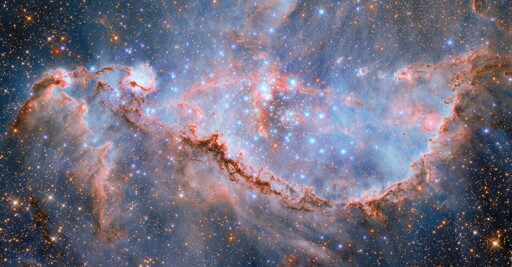 Day 8 of the 2025 Space Telescope Advent Calendar: Sculpted by Stellar Winds. NGC 346 is a young star cluster about 200,000 light-years away, in the Small Magellanic Cloud. This image combines Hubble observations made at infrared, optical, and ultraviolet wavelengths, showing the hot blue stars carving out a space inside the surrounding nebula of gas and dust.