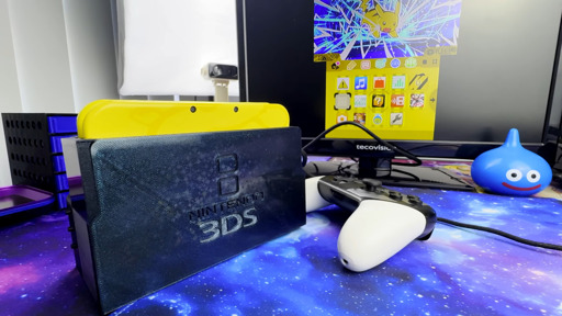 While the 3DS looks stock at a glance, it has already been upgraded internally – there’s a USB-C capture card built in, half-ticking the “monitor output” requirement, and a Raspberry Pi board turns that output into HDMI. Building a charging dock is also pretty simple, with just two contacts on the side that desire 5V. Now, the pro controller support was a fair bit harder – requiring an internal modchip for emulating buttons, and trying out receiver boards for the Switch controller until a well-functioning one was found.