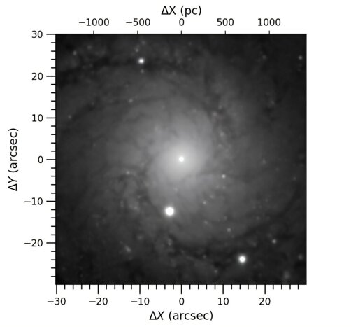 By analyzing the data from the PHANGS-MUSE survey, an international team of astronomers has inspected a nuclear star cluster of the nearby large spiral galaxy Messier 74. The new study presented Dec. 3 on the arXiv pre-print server, provides essential information regarding the properties and nature of this cluster.