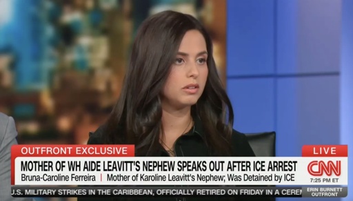 During a Friday appearance on CNN, the mother of Press Secretary Karoline Leavitt's nephew, Bruna-Caroline Ferreira, said that the ICE officers who arrested her last month as she was driving to pick her son up from school did not present a warrant and took her away in an unmarked car.