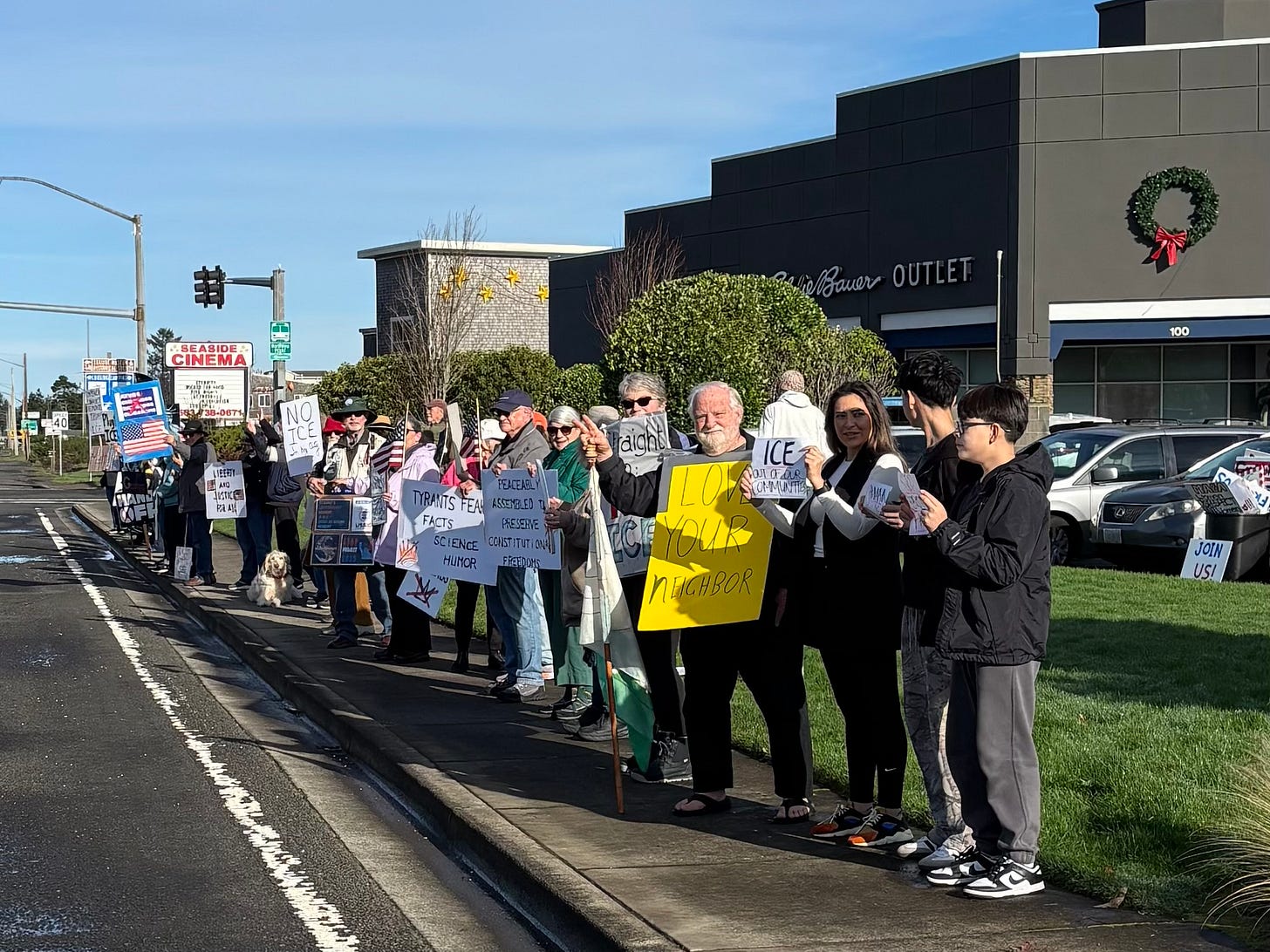 40 people in Seaside OR on Saturday. ICE Has No Business Here; resisting federal efforts to site an ICE detention center on the Oregon Coast. There were protests in cities all along the Coast today.
