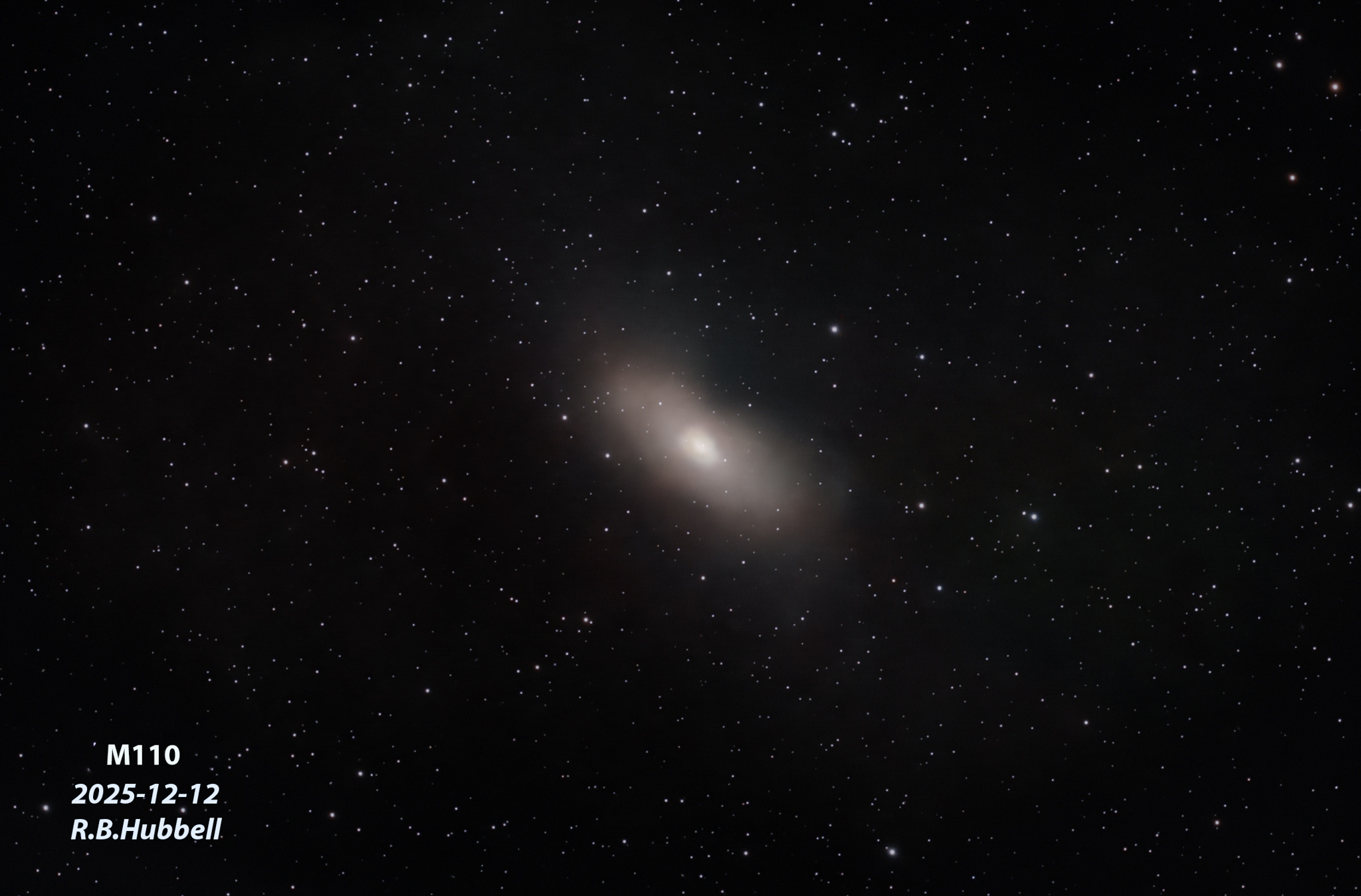 M110, a frequently overlooked satellite galaxy of Andromeda. M110 is located about 2.7 million light-years from Earth and is one of 35 satellite galaxies of Andromeda.