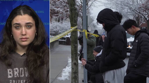 A deadly mass shooting at Brown University left two students dead and nine others injured on Saturday. One student, Mia Tretta, had survived a shooting in 2019 when she was shot in the stomach as a high school student. Her best friend was killed in the shooting, and she had selected Brown University for Rhode Island’s strong gun control laws. Now she has survived yet another school shooting. “Physically and emotionally, a school shooting takes your whole life and flips it upside down,” says Tretta, who criticizes politicians who refuse to enact meaningful gun reform. “We know that every single act of gun violence is 100% preventable.”