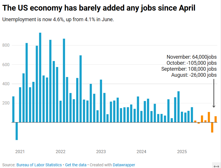 The Bureau of Labor Statistics — which can still be trusted! — reports today that just 64,000 jobs were added to the economy in November.